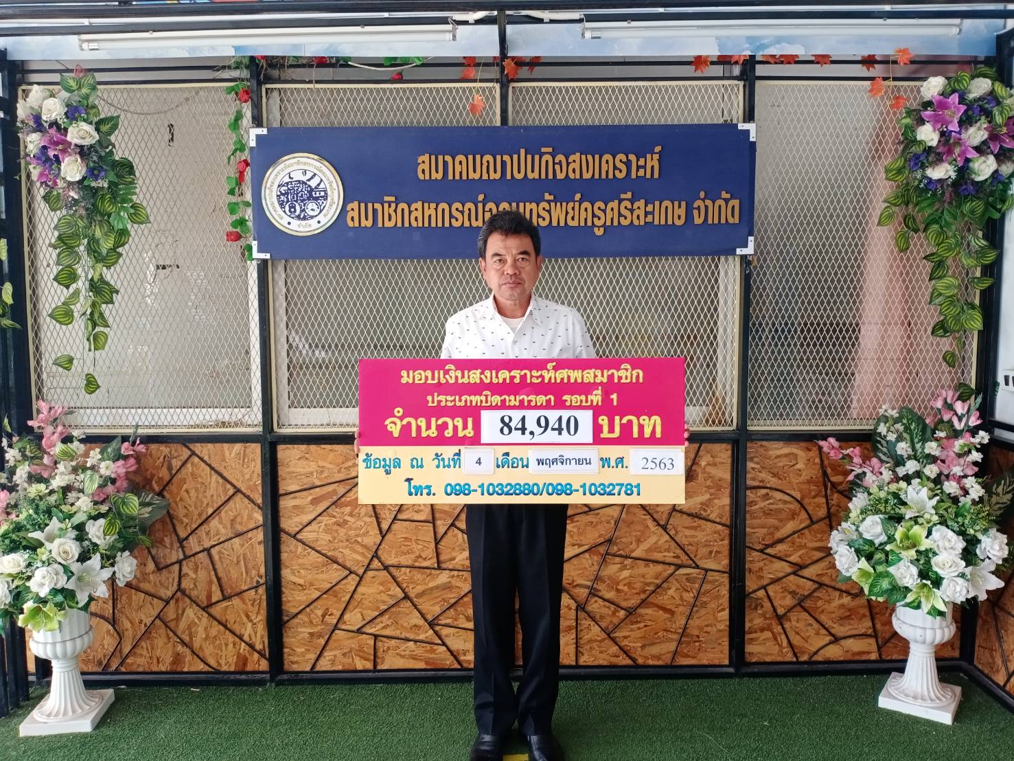 สมาคม ฌส.ศก. มอบเงินสงเคราะห์ครอบครัว งวดที่ 1 จำนวน 84,940 บาท ให้แก่ นางไร บัวประคอง เสียชีวิตด้วยสาเหตุตายธรรมชาติไม่ทราบโรค เลขประจำตัวสมาชิก สมาคมฯ เลขที่ จ.5729 สมาชิกประเภท บิดา-มารดา โดยมีนายฉลอง บัวประคองเป็นผู้รับเงินสงเคราะห์ครอบครัว